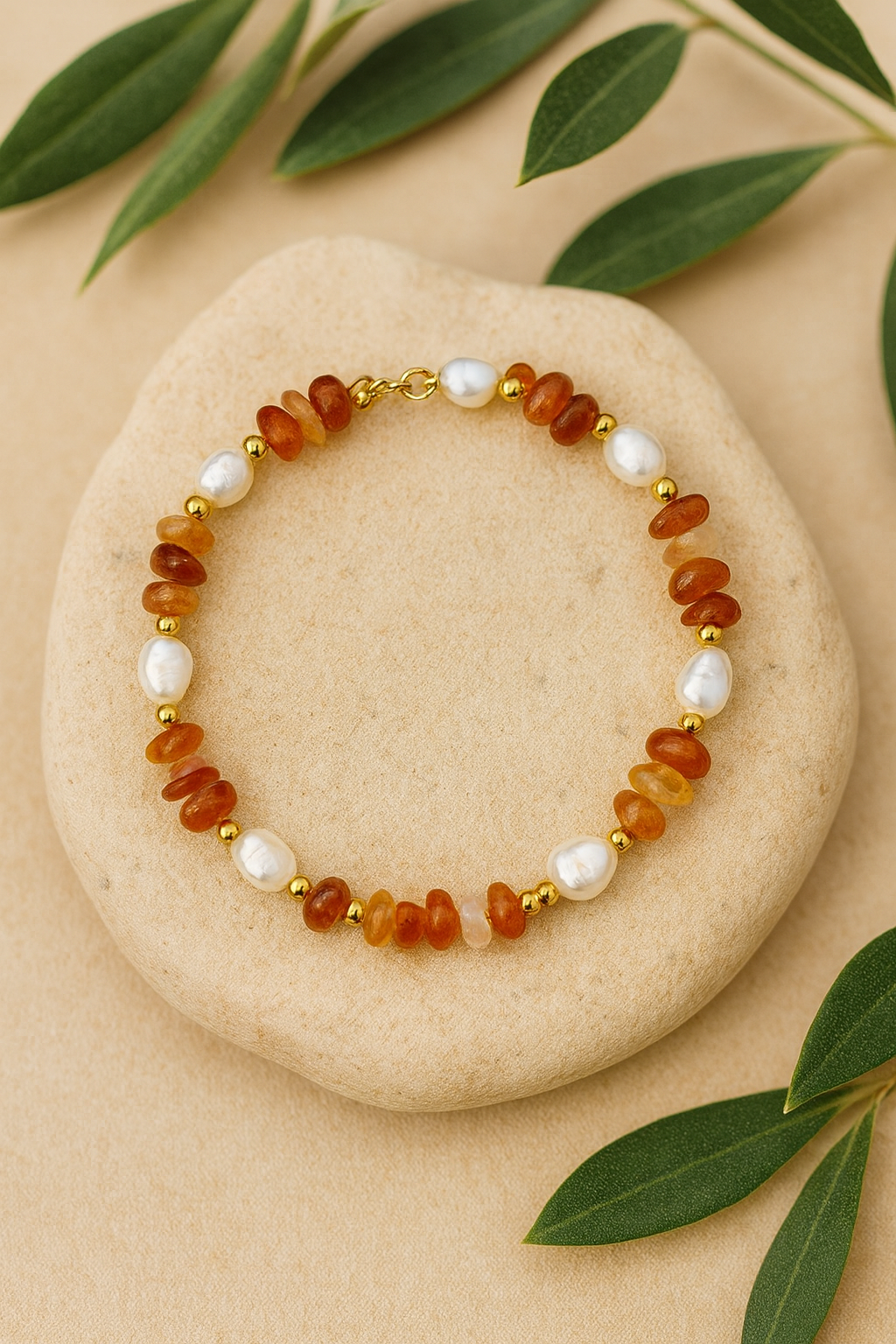 Cirelia – Armband aus Karneol und Süßwasserperlen
