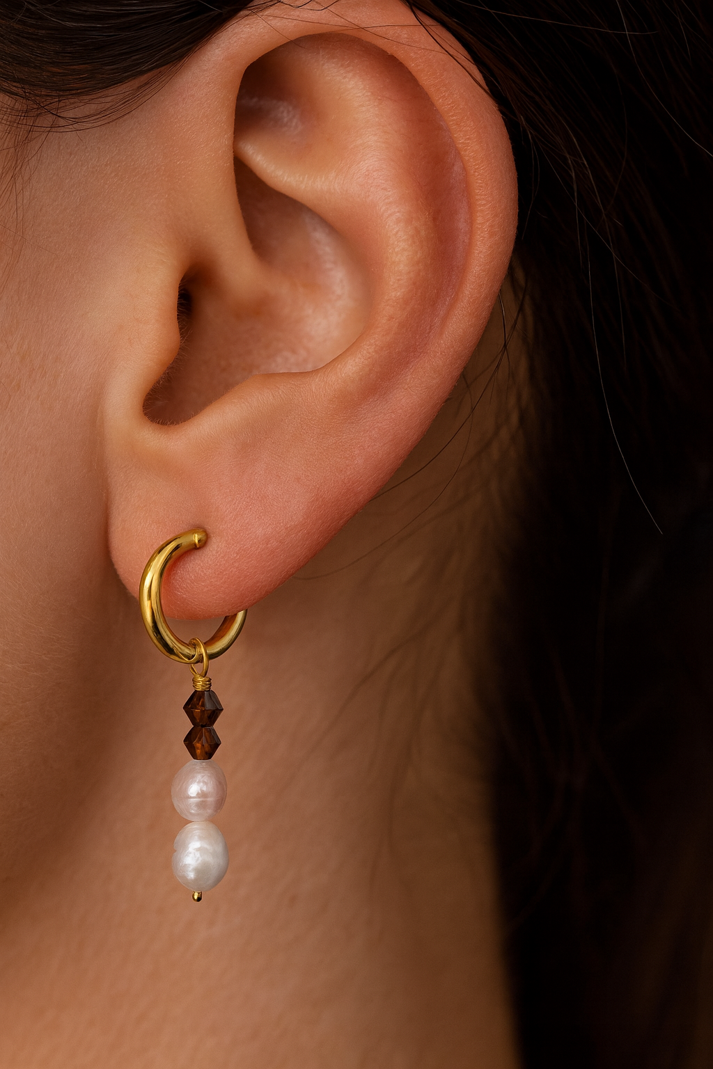 Diese zarten Creolen mit hängenden Perlen verleihen jedem Look eine elegante und zugleich leichte Ausstrahlung. Die Kombination aus glänzender Creole, feinen Glasperlen und schimmernden Perlen sorgt für einen femininen, zeitlosen Stil, der sich sowohl im Alltag als auch zu besonderen Anlässen tragen lässt.